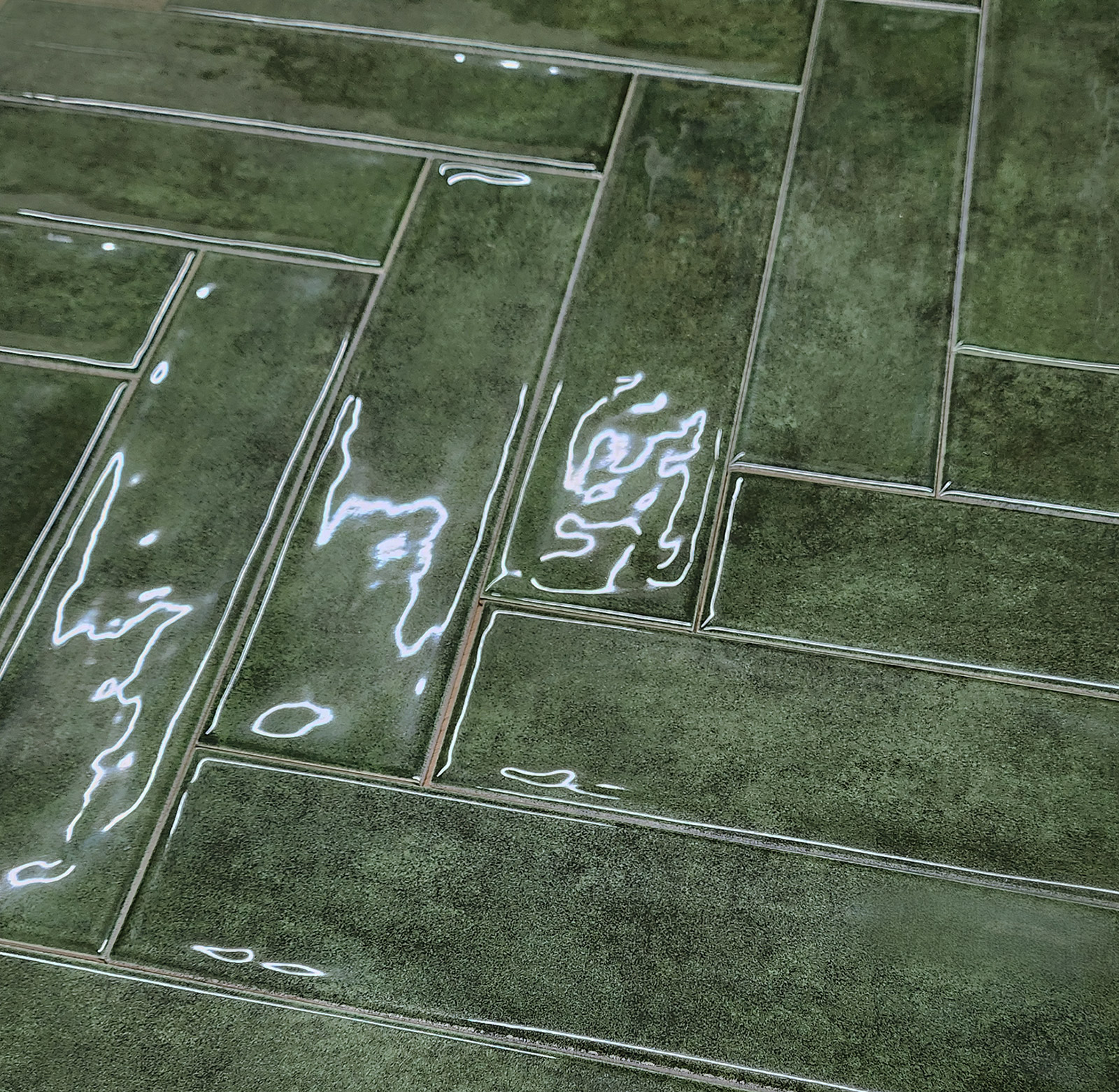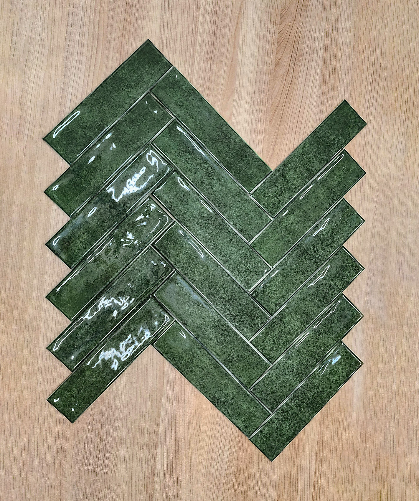 Introduce depth and character to your interior with these green metro wall tiles, finished in a rich tone that brings a natural, calming feel to any space. The high gloss surface enhances the colour variation and reflects light beautifully, creating movement and visual interest across the wall.