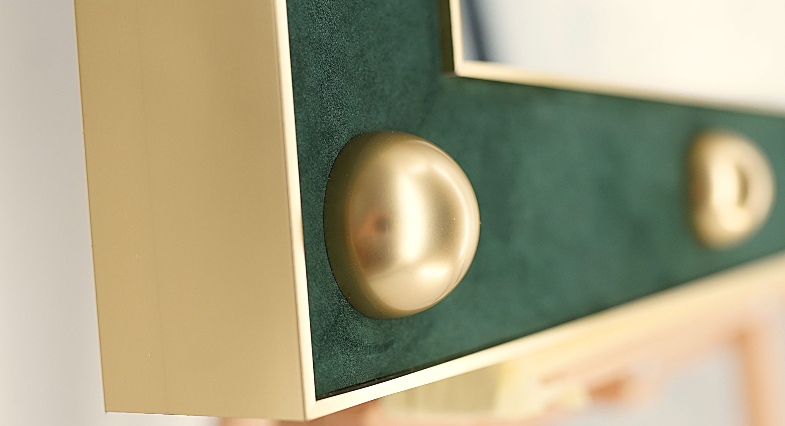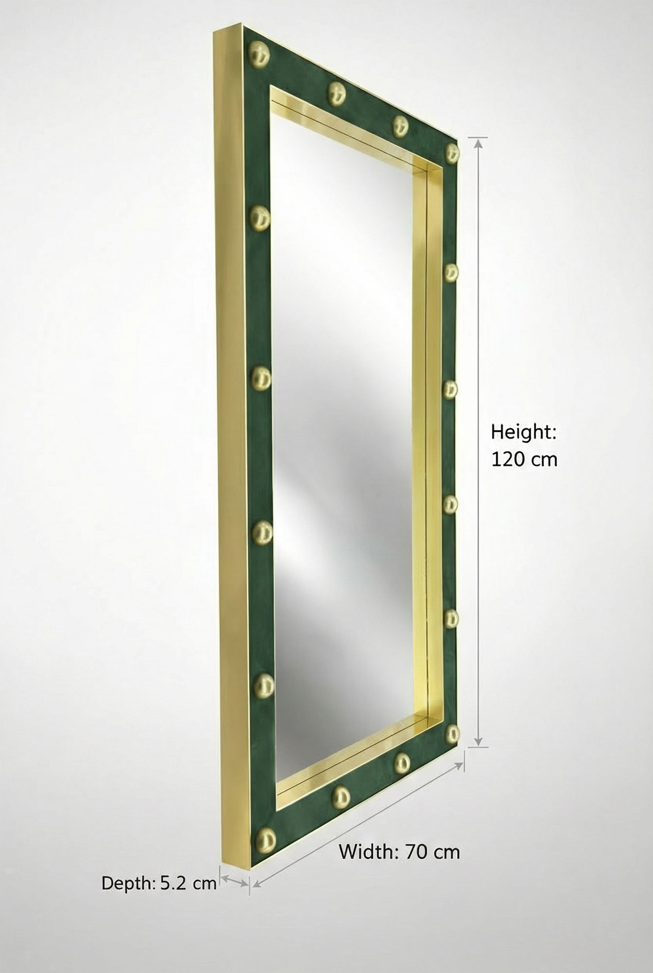 Luxury meets craftsmanship in every detail of this striking decorative wall mirror. Designed for interiors that demand character and refinement, this piece features a sculptural frame crafted from polished aluminium in a rich gold finish, paired with genuine leather in an elegant bottle green tone.
