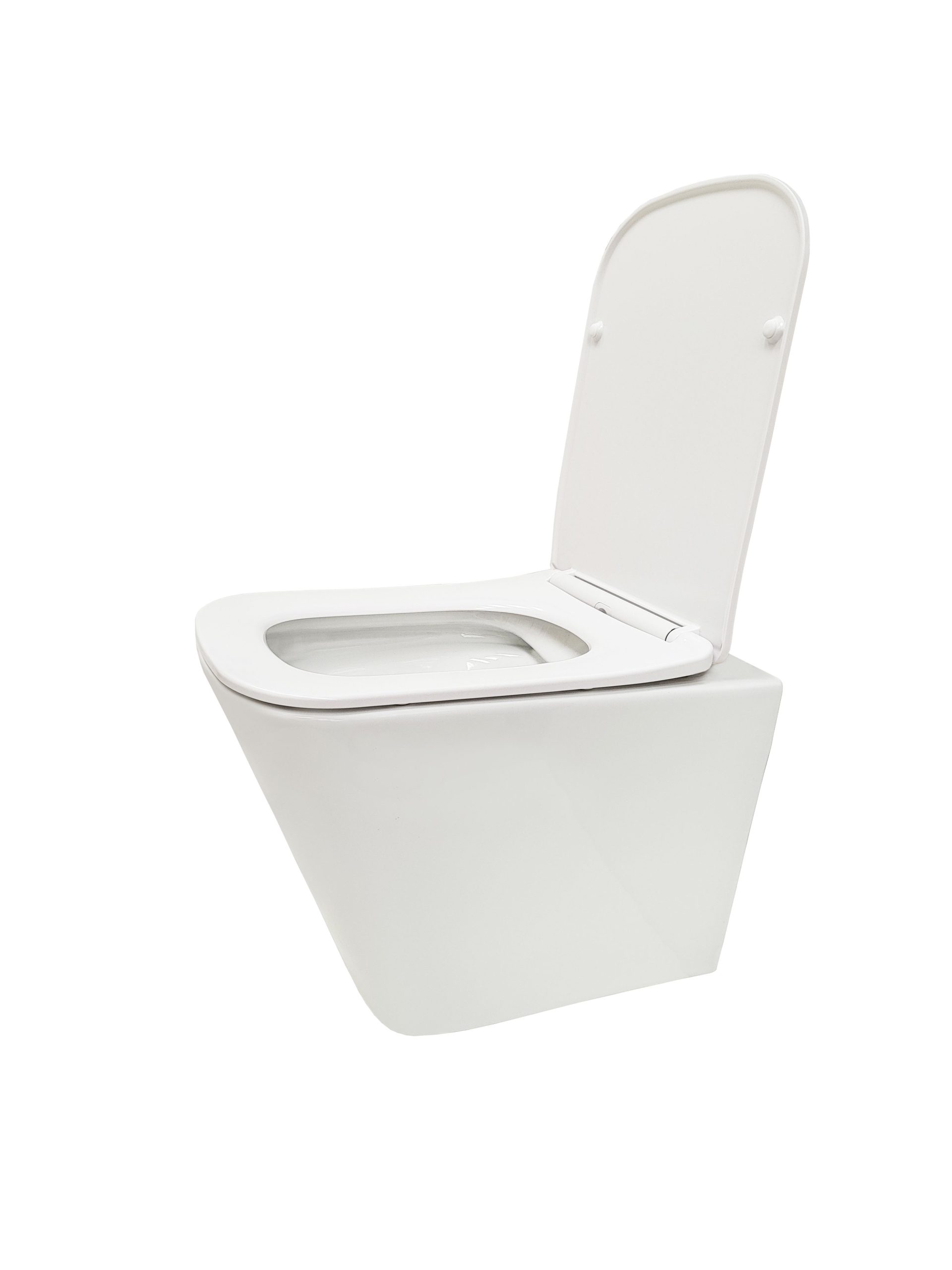 Create a contemporary feel in any bathroom with this stylish wall-hung toilet. Its smooth square pan design stands out thanks to its high gloss finish. It comes with soft close toilet seat – ensuring a quiet and gentle closing motion. It’s much more hygienic too, thanks to the rimless design – ensuring a thorough and hygienic clean with each flush. Designed to be used with a universal wall-hung frame, the toilet pan is installed directly onto a wall meaning the unsightly pipework is hidden from view. Additionally, due to the cistern being hidden in the wall, a wall-hung toilet and frame will take up much less space than a standard design. This makes it an excellent choice for maximizing bathroom space.
